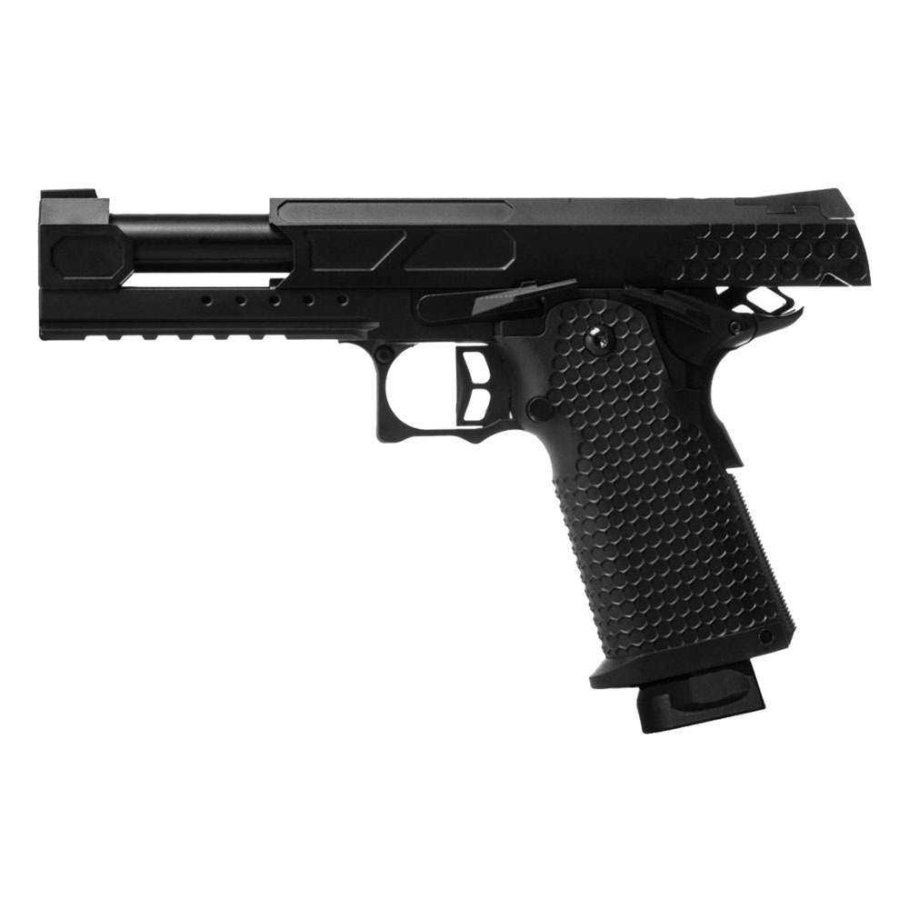 Ontdek de elegantie en verbeterde functies van de Novritsch SSP2 GBB, een airsoft replica die uitblinkt in stijl en prestatie. Jouw ervaring wordt verrijkt met de hexagonale textuur op de handgreep, waardoor je een ongekende grip en stabiliteit ervaart. Dit zorgt ervoor dat de replica perfect in je hand ligt, waardoor je elk schot met vertrouwen en precisie kunt afvuren.
